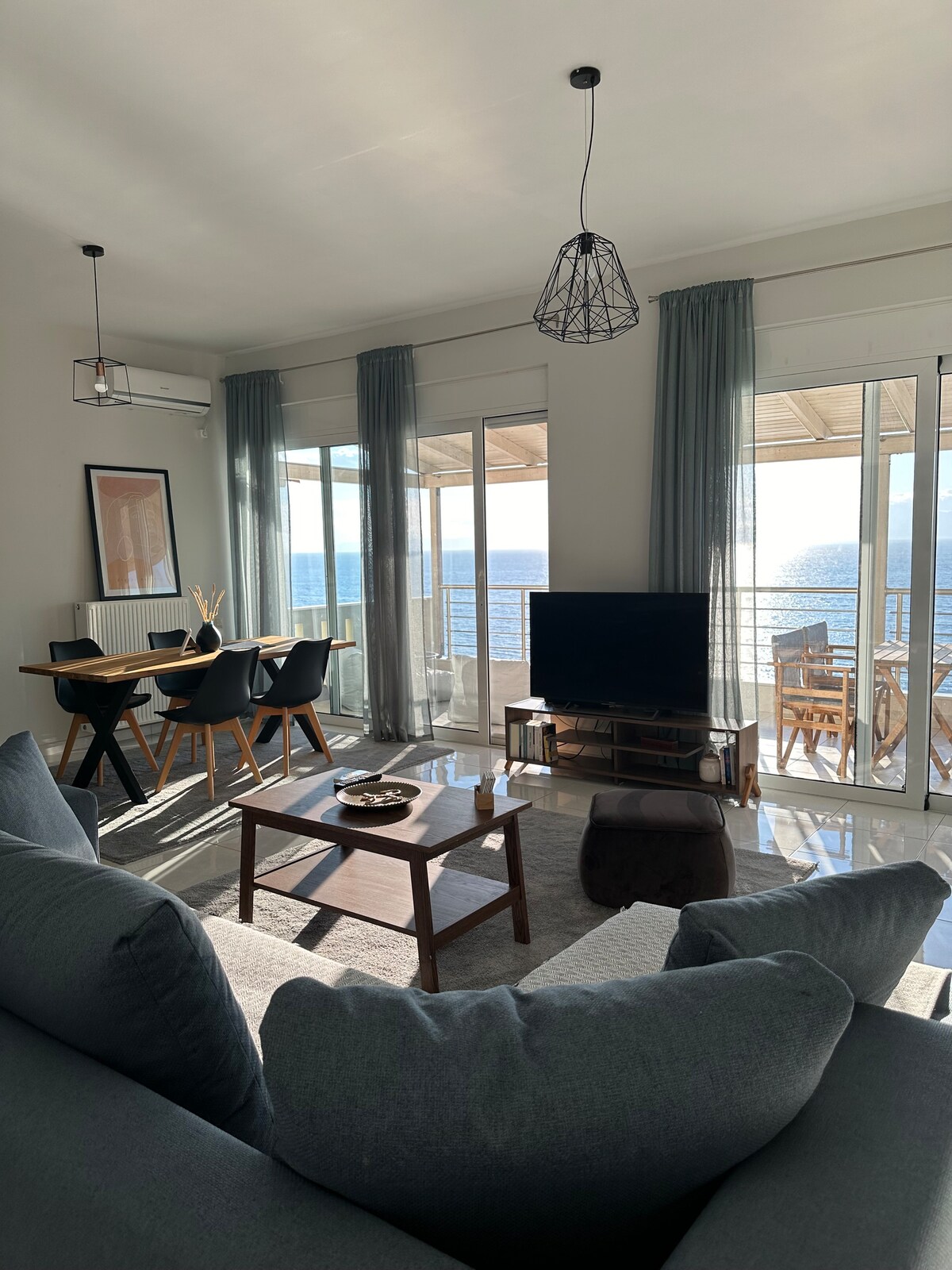 Studio med udsigt over Messiniabugten og foden af Taygetos. Velegnet til sommerferie, da den ligger på Kalamata-stranden! Med havet lige ved siden af og mange muligheder for mad, kaffe og drikkevarer. Byens centrum ligger i kort afstand (busstoppested lige uden for huset). Ideel til par og enkeltstående gæster. Der tilbydes to gratis cykler til ture på byens cykelsti.
