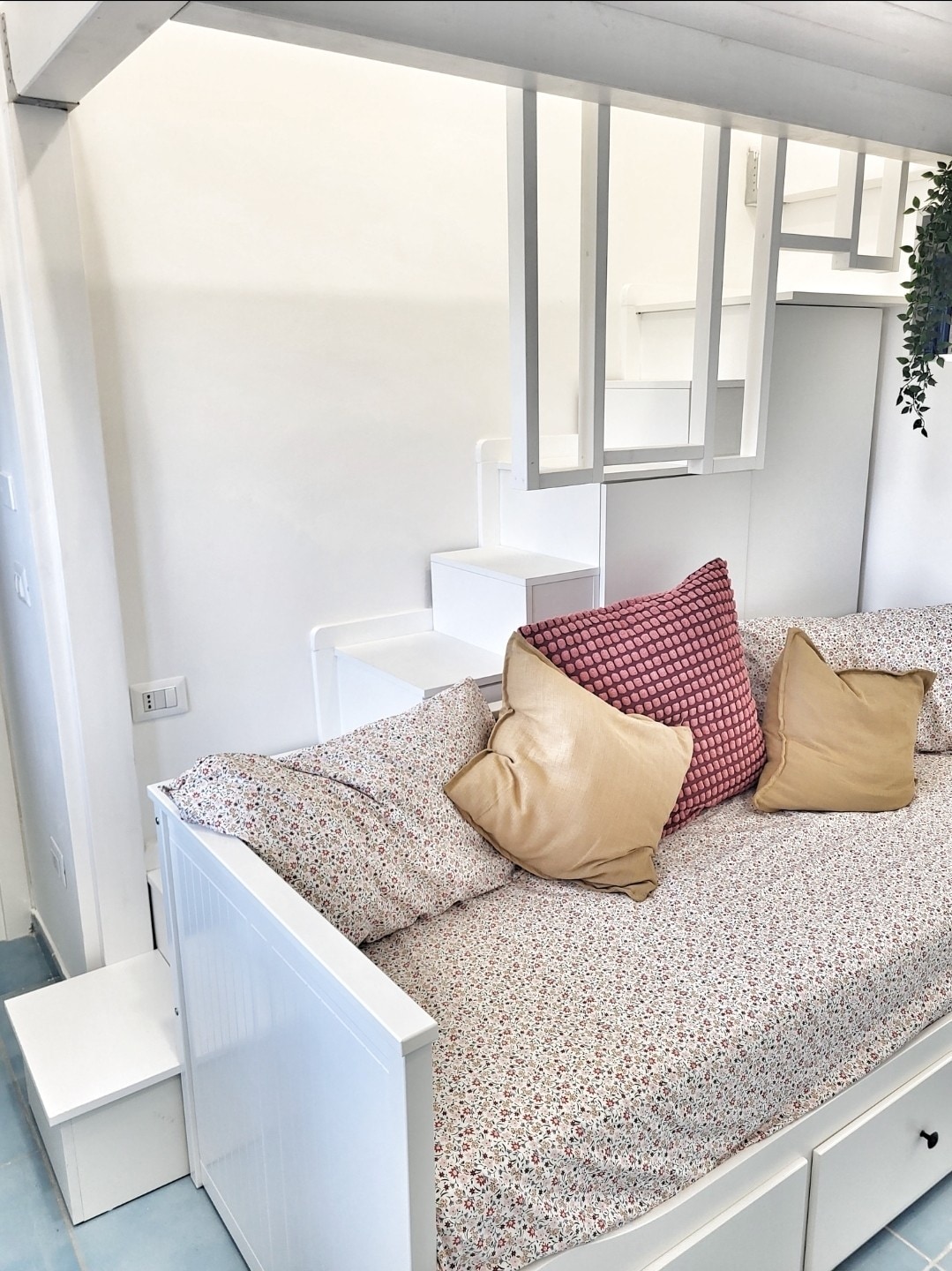 Blu is a cosy independent suite belonging to the newly opened residence Pezz Pezz, in the town of Praiano. The original furnishing of the suite fully synthesizes the modernity and tradition of the Amalfi Coast and makes Blu the perfect location for honeymooners and young couples. It has an independent entrance and a terrace equipped with a private hot tub and sun beds, perfect to relax after a busy day around the coast and enjoy the sun while it sets behind the Capri stacks (Faraglioni).