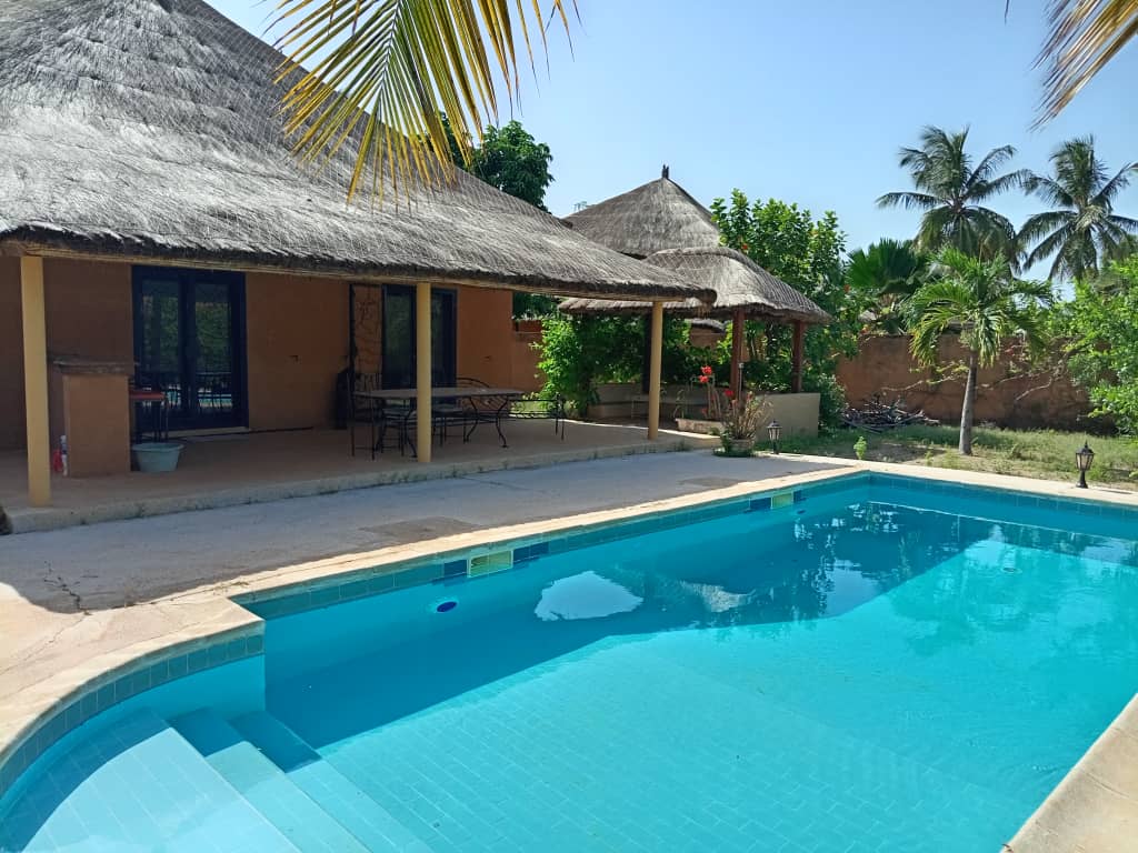 Très belle villa neuve de 140m2 sur 1100m2 de terrain. Grand séjour/salon, cuisine, 4 chambres toutes les chambres ont la climatisation (tous les lits possèdent une moustiquaire individuelle), 3 salles de bain, 2 WC Grande piscine privée de 12 par 4 avec sa plage californienne et son bar, un jardin engazonné et arboré ainsi qu'un magnifique jardin tropical. Électricité à charge du locataire, Au delà de 6 pers, une seconde employée sera ajouté à charge du locataire (5000 cfa/jour