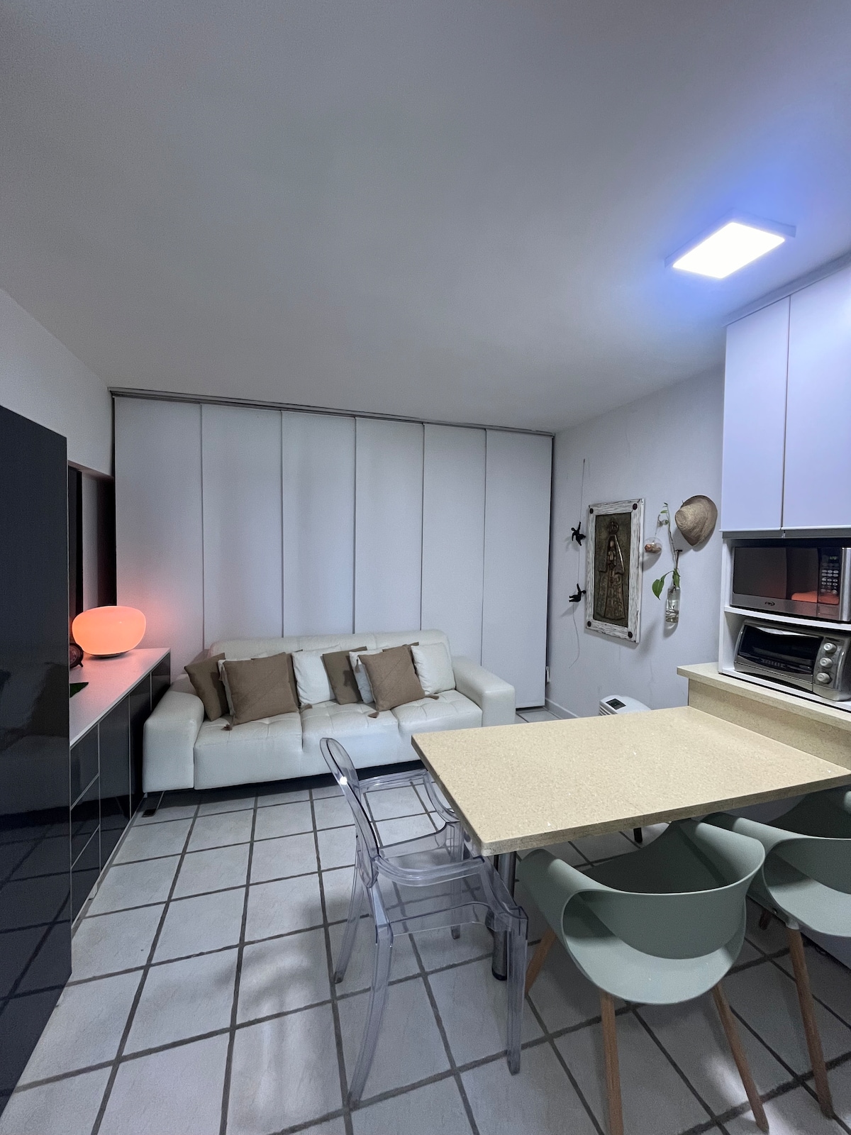 Ingen Airbnb-gebyrer: Du betaler kun for det, du får! Nyd et uforglemmeligt ophold i "The Beach House", en nyrenoveret lejlighed i Playa Moreno, Isla de Margarita. Denne bolig er perfekt til par eller små familier, og tilbyder komfort og stil i hvert hjørne. Med et soveværelse med dobbeltseng og en sovesofa i stuen kan denne lejlighed nemt rumme op til 3 personer. Køkkenet er fuldt udstyret, herunder et vandfilter til drikkevand.