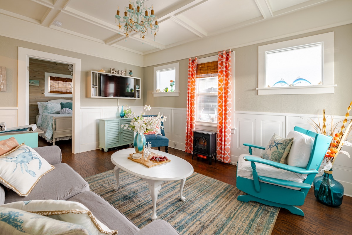 Din drømmeferie ved kysten! Slap af og lad op i denne smukke bolig med to soveværelser og et badeværelse, der er inspireret af havet. Den er gemt væk for at sikre privatliv, men kun få minutter fra de bedste restauranter, butikker og udendørs eventyr, og det er den perfekte blanding af charme og bekvemmelighed. Nyd luksusbekvemmeligheder som HDTV, kabel-tv, højhastigheds-wi-fi og et fuldt udstyret køkken. Uanset om du udforsker Olympic National Park eller slapper af i hyggelig elegance, føles Seashell Cottage som hjem. Denne charmerende feriebolig bliver hurtigt booket – reserver dit ophold i dag.
