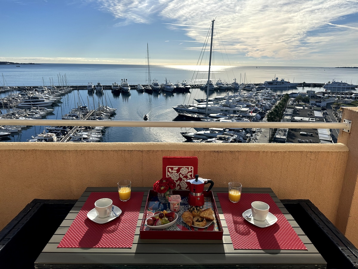 Meget behagelig 2-værelses lejlighed med udsigt over havnen i Golfe Juan