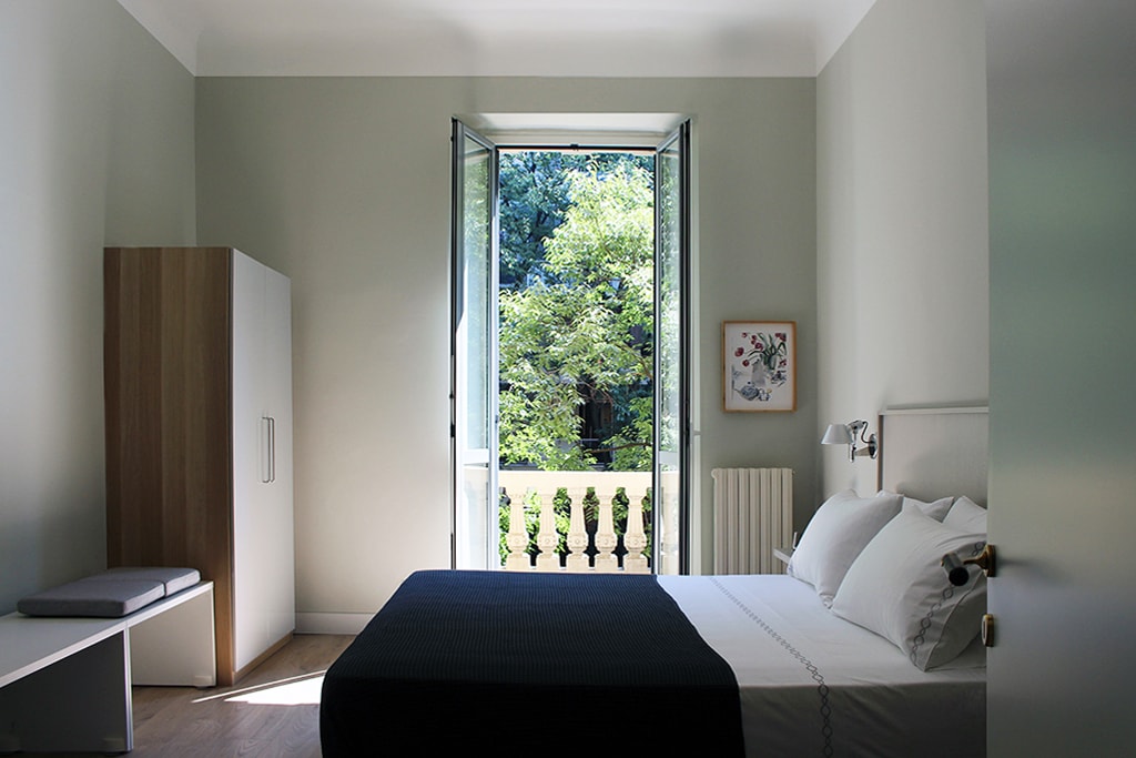 Olive Garden ligger i et meget centralt kvarter, i et område fyldt med barer og restauranter, få skridt fra Domkirken og shoppingens hjerte. I vil have fred og ro, fordi vores 30 kvm studie (med seng og skjult bord) er i en typisk milanesisk bygning på 2. sal uden elevator. Lys, med en smuk og privat terrasse på 20 kvm, omgivet af grønne områder, overdækket af automatiseret baldakin og opvarmet med varmelampe. Med sans for detaljer og designermøbler