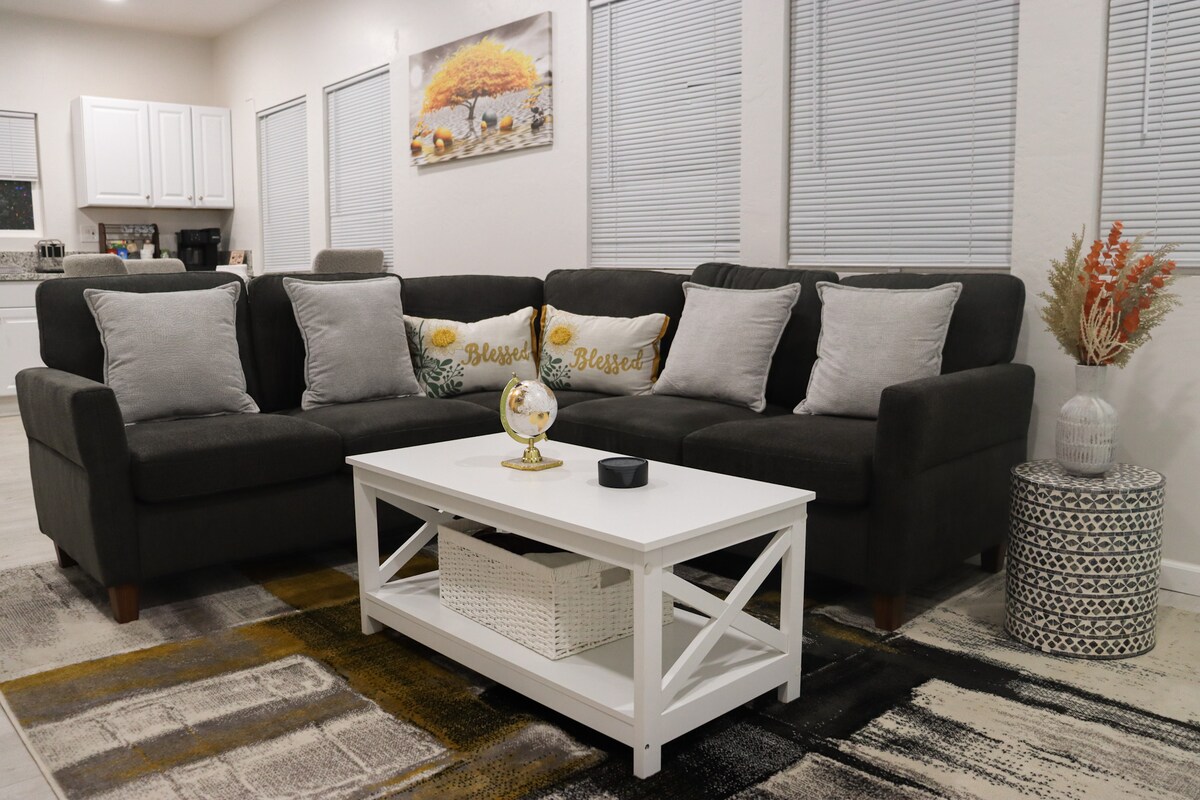 2000 kvadratmeter rummelig 3BD 2,5BA 2LivingRoom bolig beliggende på en fredelig Cul de sac. Fuldt renoveret med ny maling, nyt gulv, nye badeværelser, nyt sengetøj osv. Smart-tv, gratis wi-fi, streaming, udstyret køkken, grill, bordtennis, bordfodbold, cornhole, skriveborde. Sovepladser til 10-15 personer: 2 queensize senge, 2 enkeltsenge, 2 queensize sofaer, 2 queensize luftmadrasser. Beliggende i hjertet af Porterville, mindre end 1,5 km fra dagligvarebutikker, butikker og restaurant. Sequoia National Park ligger 30 minutter derfra.