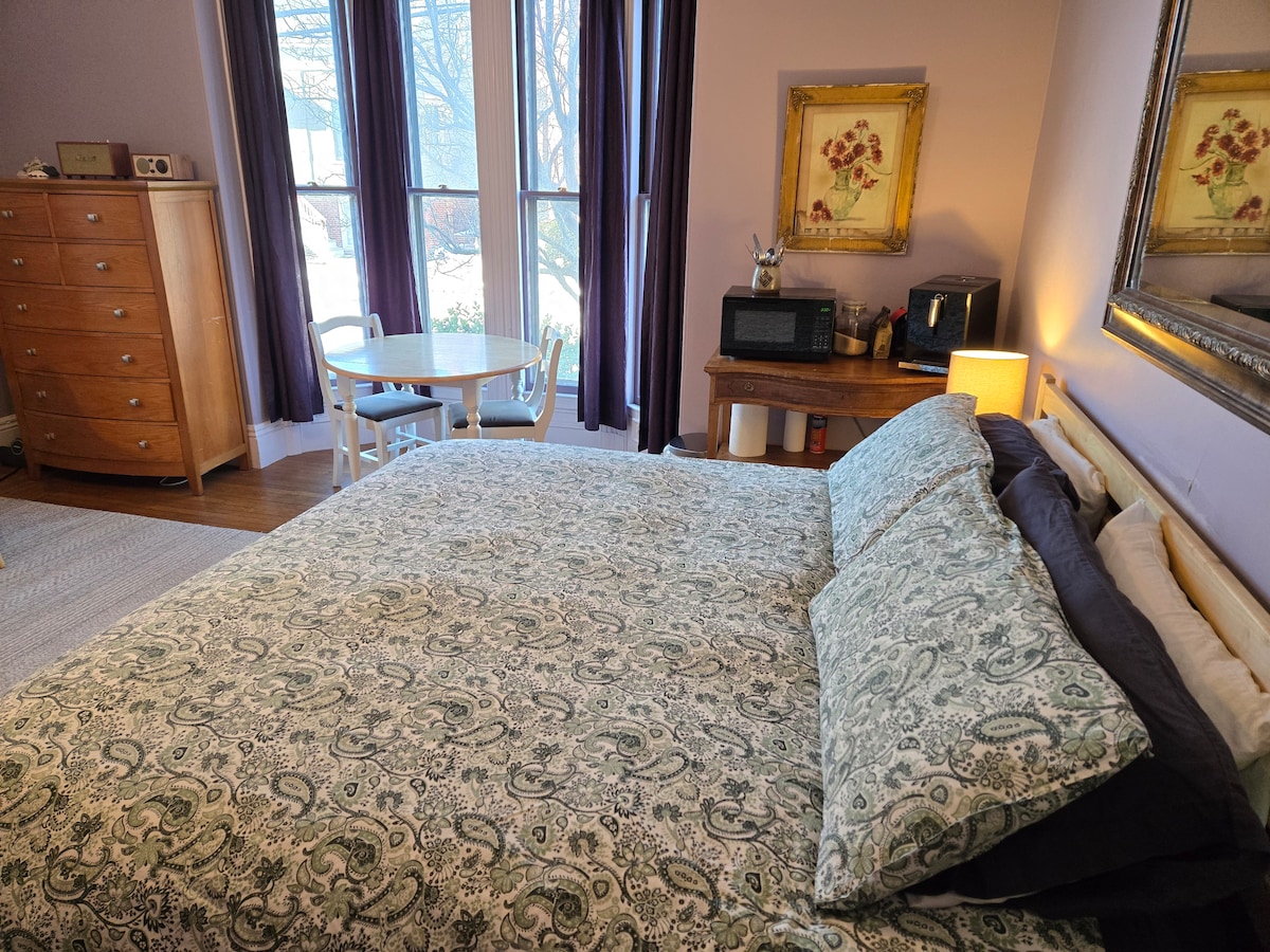 Denne rummelige studielejlighed i første sal har en perfekt beliggenhed med parkeringsmuligheder på gaden kun to blokke væk og tilbyder et roligt, privat fristed i et smukt, ejerbeboot viktoriansk hjem. Det er et helt selvstændigt sted, hvor du kan slappe af, efter du har udforsket Portlands pulserende mad-, kunst- og kulturscene. Inkluderer en dedikeret parkeringsplads. Bemærk, at selvom soveværelset er rummeligt, er badeværelset lille!