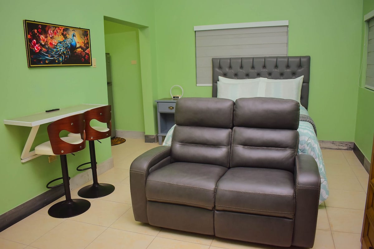 En elegant suite beliggende i et eksklusivt lokalsamfund i øvre St Andrew har 1 soveværelse - queensize-dobbeltseng, fladskærms-tv, kommode og kommode. Familieværelset har fladskærms-tv, mikrobølgeovn og køleskab. Aircondition, eget badeværelse med bruser og jacuzzi (varm/kold). Døgnåben sikkerhed, liveovervågning, udendørs kameraer og automatisk port. Husholderske kan lave morgenmad til en lav pris. Keurig-kaffemaskine er i suiten. Adgang til pool og frodig baghave. Der er håndklæder og sengetøj.