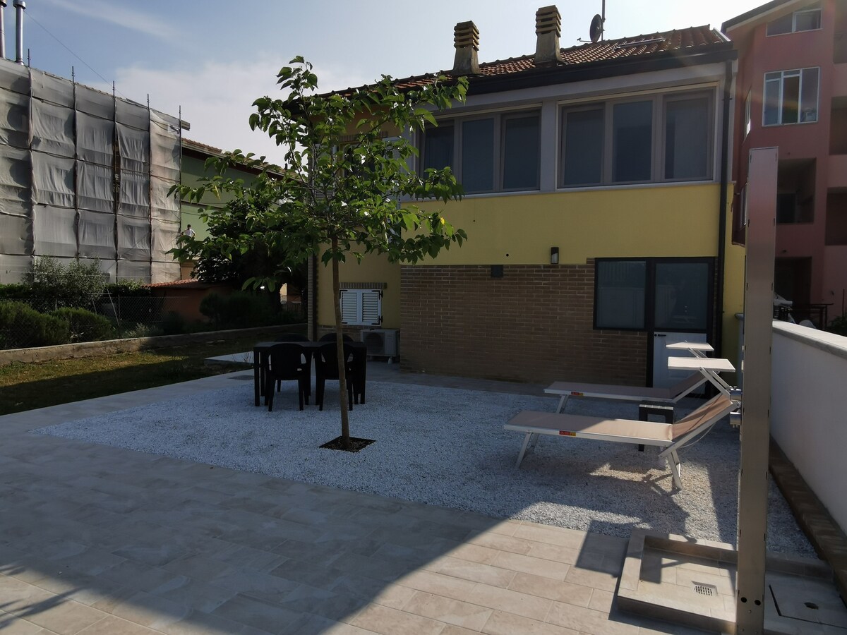 Strukturen, der er fuldstændig renoveret, ligger mindre end 100 meter fra havet, hvor du har mulighed for at vælge mellem en gratis strand eller en strand med liggestole, parasoller og restaurantservice. Huset, helt uafhængigt og frit på alle 4 sider, tilbyder maksimal privatliv med mulighed for at benytte et udendørs område og en stor plads, hvor du nemt kan parkere din bil. Strukturen ligger tæt på supermarkeder og restauranter og er beliggende tæt på centrum