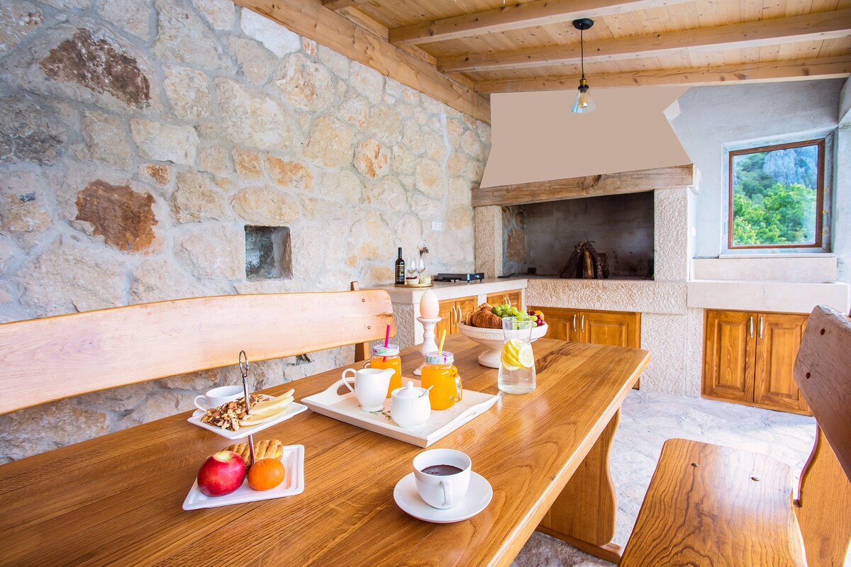Die Erholung beginnt bereits bei der Ankunft. Begrüßt werden Sie von der Natur und dem Gesang der Vögel, da Sie weit und breit keine Nachbarn haben. Das im Januar 2016 fast fertig renovierte Ferienhaus im dalmatinischen Stil mit schöner Gartenterrasse befindet sich in einer traumhaft ruhigen Lage. Genießen Sie vom Fuß des Biokovogebirges aus, inmitten einer grandiosen Karstlandschaft, eine beeindruckende Aussicht auf die Stadt Makarska und auf die Inseln Brac und Hvar.