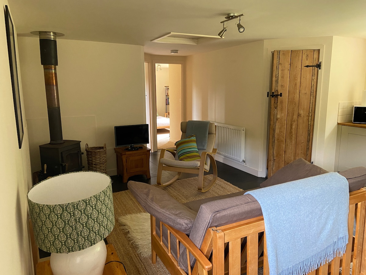 Apiary er et ombygget høloft, der ligger for enden af en 16. århundredes Dartmoor-bondegård, en kort ti minutters gåtur fra Widecombe in the Moor og 200 meter fra Two Moors Way. Med egen privat parkering og indgang har det elegant møblerede værelse en eklektisk blanding af antikke møbler og Smeg køkkenapparater. Fra april til august kan du vandre 50 meter ned ad vejen til en fem hektar stor eng med en Dartmoor-bæk og en samling af vilde orkideer og områder med vilde blomster.