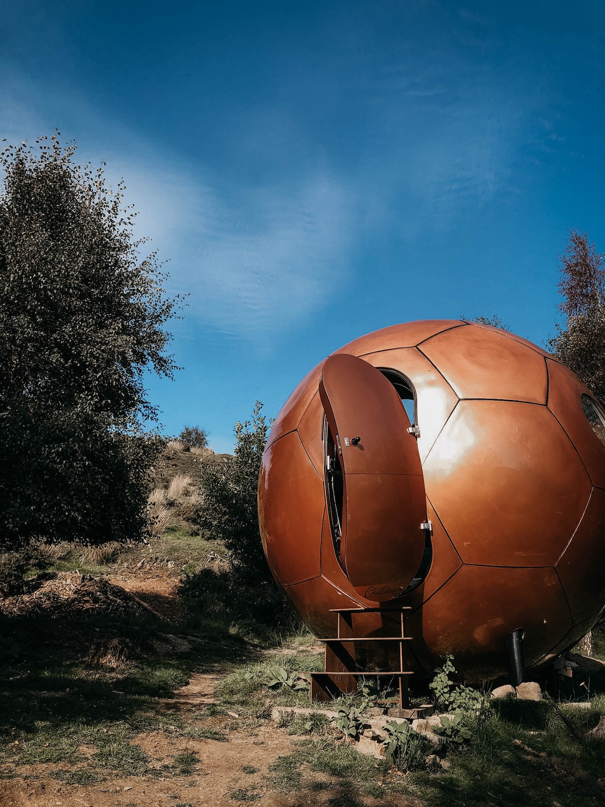 Aerodynamisk designet opvarmet glampingkapsel året rundt med kingsize-dobbeltseng og indendørs køkken Beliggende på en klippefyldt udkant med en utrolig udsigt over bakkerne; ideel til stjernekiggeri eller en digital detox - superhurtig wi-fi er tilgængelig I nærheden er der et toilet- og brusekabine, udendørs badekar og bålplads med brændefyret pizzaovn Udstyret med sengetøj, træstammer, madlavningsudstyr; du skal blot medbringe dig selv og din mad Fremhævet på fantastiske steder, denne morgen og flugt til landet