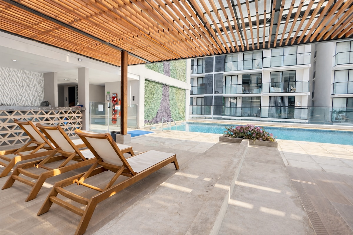 Nyd en unik oplevelse i denne suite på 16. etage med en utrolig havudsigt fra balkonen. Ideel til par eller små familier, der søger afslapning og komfort lige ved stranden. Denne suite ligger i Pozos Colorados med direkte adgang til havet og et eksklusivt teltområde for bygningen. Den tilbyder varmt vand, et fuldt udstyret køkken, aircondition, wi-fi og adgang til tre pools, en sauna, et dampbad og en jacuzzi. Alt, hvad du behøver for et uforglemmeligt ophold ved havet.