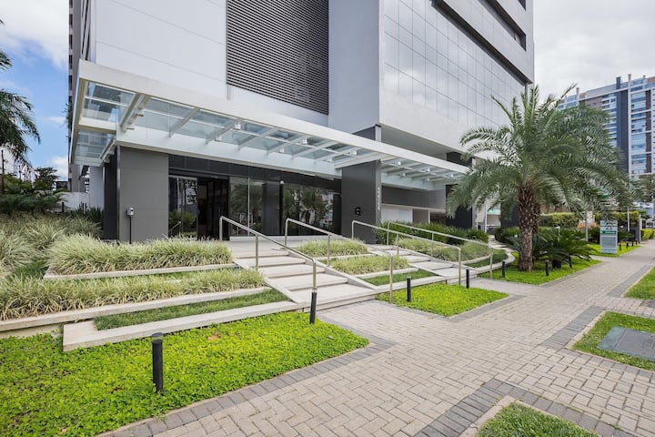 Oplev raffinement i denne moderne, soloplyste studio i hjertet af Batel, Curitibas mest eksklusive kvarter. Den er perfekt til op til fire gæster og har en dobbeltseng og en sovesofa. Nyd eksklusiv adgang til pool, sauna og fitnesscenter. Du er kun få skridt fra Shopping Pátio Batel, de bedste restauranter og barer. En perfekt blanding af komfort, stil og beliggenhed.