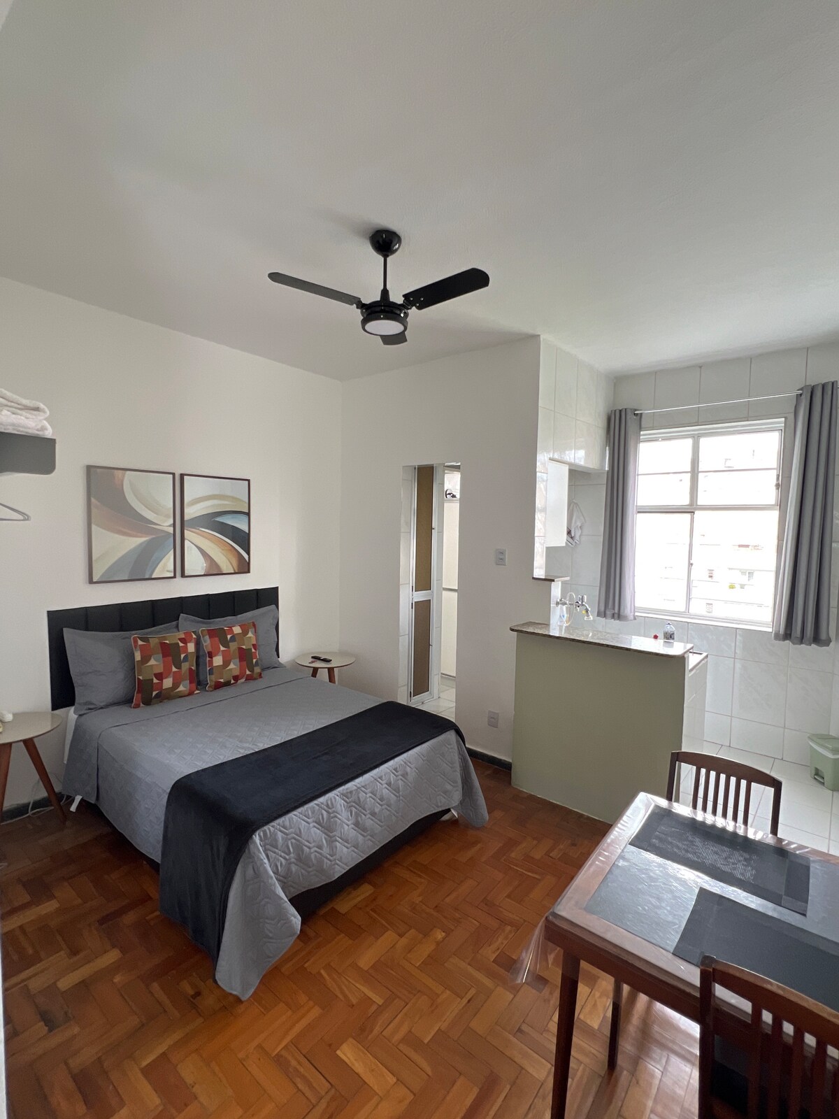 Lejlighed beliggende i centrum af Belo Horizonte, foran gadepladsen, 19. etage, definitiv udsigt, døgnåben concierge. DER ER INGEN PARKERING Lejlighed med aircondition, loftsventilatorer, 43-tommers smart-tv, tæt på turistattraktioner, supermarked, apoteker, Central Market, Municipal Park, Hippie Fair. Fantastisk til par, singler og forretningsrejsende i Minas Gerais' hovedstad. Der er et minimarked i supermarkedet i bygningen og fitnesscenteret på 16. etage.