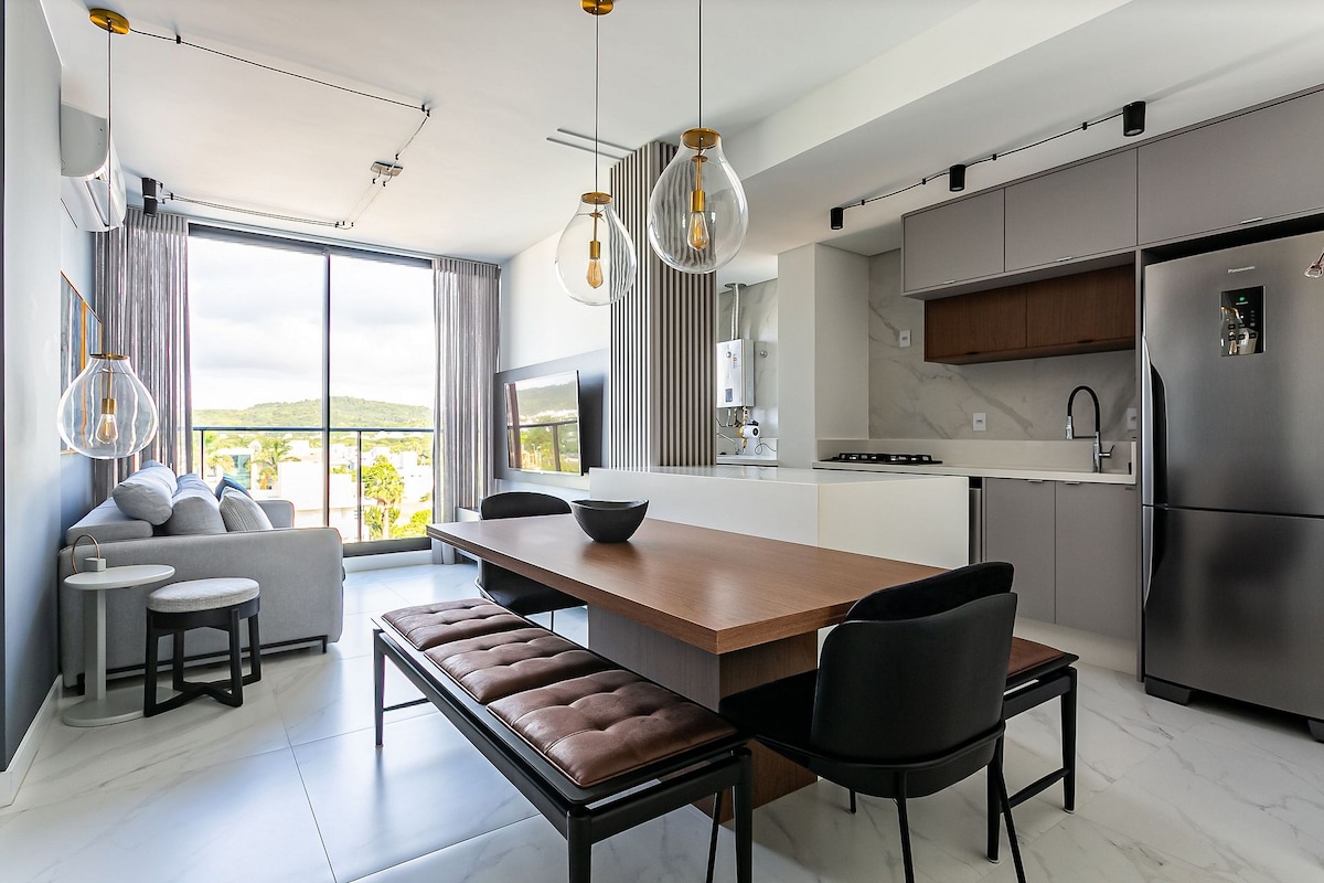 I Jurerê - den mest berømte strand i Florianópolis, roligt hav, smukke landskaber og restauranter. Du får privatlivet i en moderne lejlighed med bekvemmeligheden af et 5-stjernet hotel, herunder daglig rengøring. Perfekt til par, enkeltpersoner, forretningsrejsende og familier (med op til to børn, hvoraf det ene kan sove i en barneseng). Kun de valgfrie hotelydelser: restaurant, morgenmad eller parkering med parkeringsservice betales direkte til hotellet.