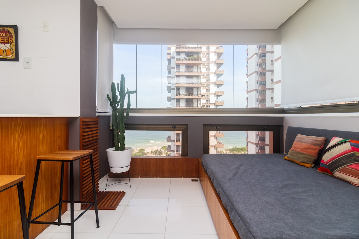 Lejlighed med havudsigt, meget velindrettet og møbleret. Beliggende i den ikoniske Barramares-lejlighedsblok, foran post 4 på Barra da Tijuca-stranden. Ideel beliggenhed til at nyde havet og udendørsaktiviteter. Forskelle: 500 MB wi-fi internet, AC split og Smart TV (55" og 50") i stuen og soveværelset, queen- og enkeltsenge i soveværelset, dobbelt sovesofa, vaskemaskine og tørretumbler og Nespresso kaffemaskine. Der er gratis stole og parasoller. Parkering inkluderet. Butikker i stueetagen og i området omkring.