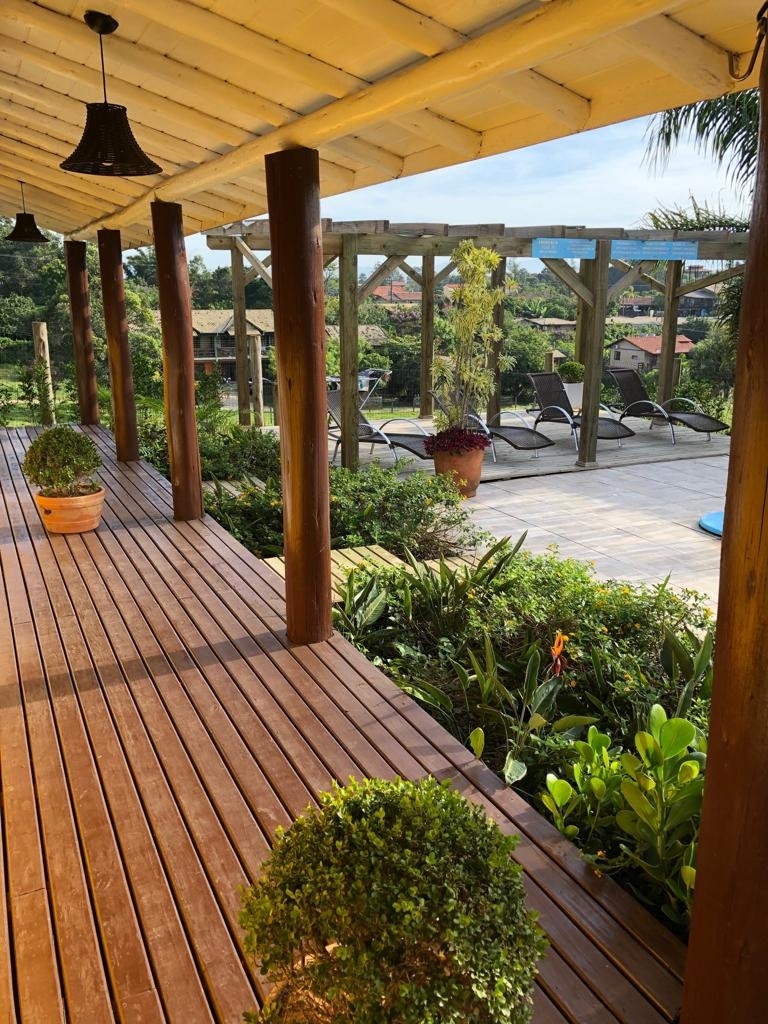 Vores boliger er hyggelige, har aircondition, SmartTV med Netflix og ultrahurtig WIFI. Hver hytte er udstyret med en seng med premium madras og en sovesofa, samt et komplet køkken med kogeplade, køleskab og andre redskaber. Vi har en kiosk med fælles grillplads med grillspyd og grill. Vi tilbyder et udendørsområde med swimmingpool, have og hængekøjer. Vi tilbyder en lækker morgenmadskurv, der leveres hver dag til din hytte R$ 80,00 for 2 personer.