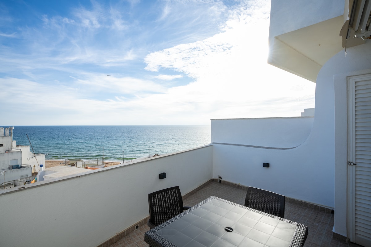 Velkommen til denne vidunderlige nyrenoverede penthouse (august 2019) på to etager på toppen af en af de højeste bygninger ved havet. I vil nyde en spektakulær udsigt over strandene, promenaden og den karakteristiske landsby Armação de Pêra. Den absolut fordelagtige beliggenhed i begyndelsen af gågaden giver dig mulighed for både behagelige gåture langs kysten og at krydse vejen og få direkte adgang til den gratis strand.