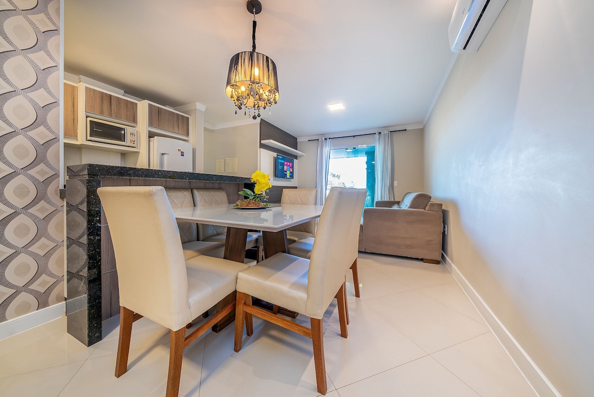 Smuk lejlighed mindre end tre minutter fra stranden! På den anden side af gaden! ➢ Bedste resortlejlighed med jacuzzi, pool og fitnesscenter! ➢ Den bedste region i Bombinhas, på den centrale avenue, tæt på alt. ➢ Kæledyr er velkomne! *se vores regler ➢ Hold øje med familien med vores eksklusive udsigt over poolen. ♡ Indkvartering valgt af Super Vou Hospedagens! ♡