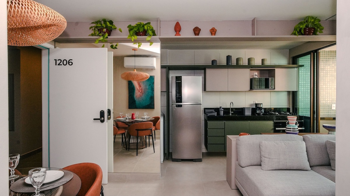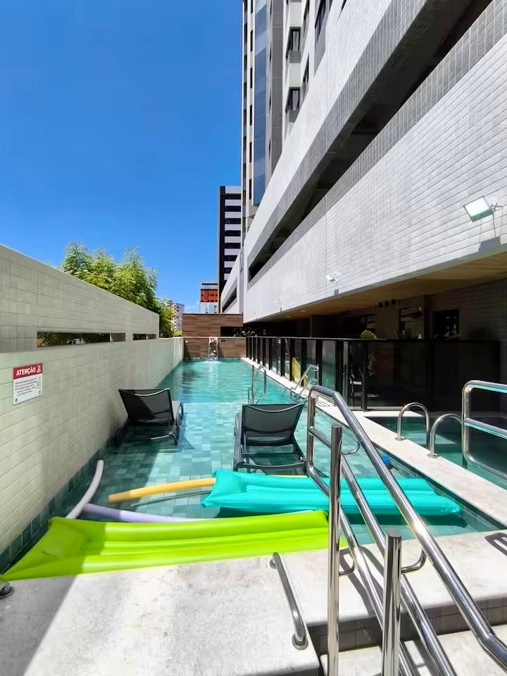 Fantastisk og moderne lejlighed med soveværelse og stue, kun få skridt fra den smukkeste havfront i Maceió. Tæt på de smukkeste turiststeder, naturlige pools, pariserhjul, restauranter, barer, supermarkeder og håndværksmesse. Ideel til dem, der ønsker at nyde de bedste strande og lokale køkken og natteliv i komfort. Plads til op til 4 personer og har aircondition, tv, wi-fi, fuldt udstyret køkken, garage, swimmingpool, fitnessrum og legetøjsbibliotek. Bygningen ligger to blokke fra stranden.