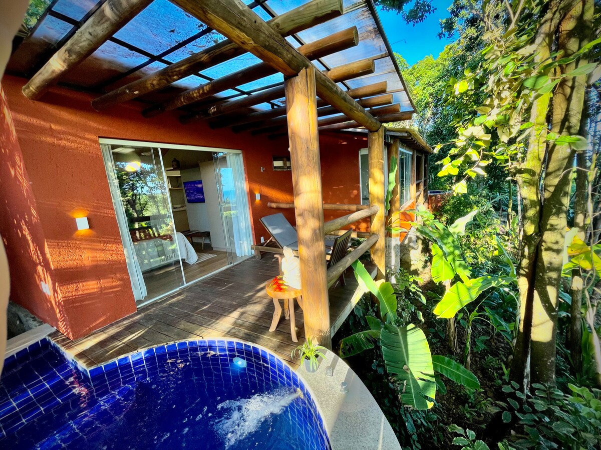 Unikt og fuldt integreret rum i lejlighedsresortet Villas of Pratagy, kendt for den smukkeste infinitypool i Alagoas. Vi ligger meget tæt på Maceió midt i et atlantisk skovreservat. Kort gåtur til Pratagy-stranden. Perfekt sted til en oplevelse midt i naturen uden at give afkald på komfort og stil. Master Bungalow med utrolig udsigt over havet og skovreservatet. Privat pool på terrassen helt skjult af vegetation. TOPPEN AF LINJEN!
