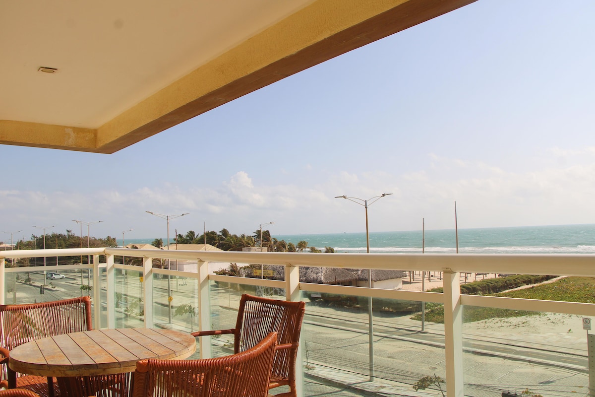 Beliggende på den bedste strand i Fortaleza, med en smuk udsigt over kysten i hovedstaden i Ceará. Komplet lejlighed med to værelser udstyret med aircondition og dobbeltseng, køkken med redskaber, stue med tv og spisebord og balkon med sofa og bord. Lejligheden er beliggende ved havet, og alle værelser har udsigt over stranden