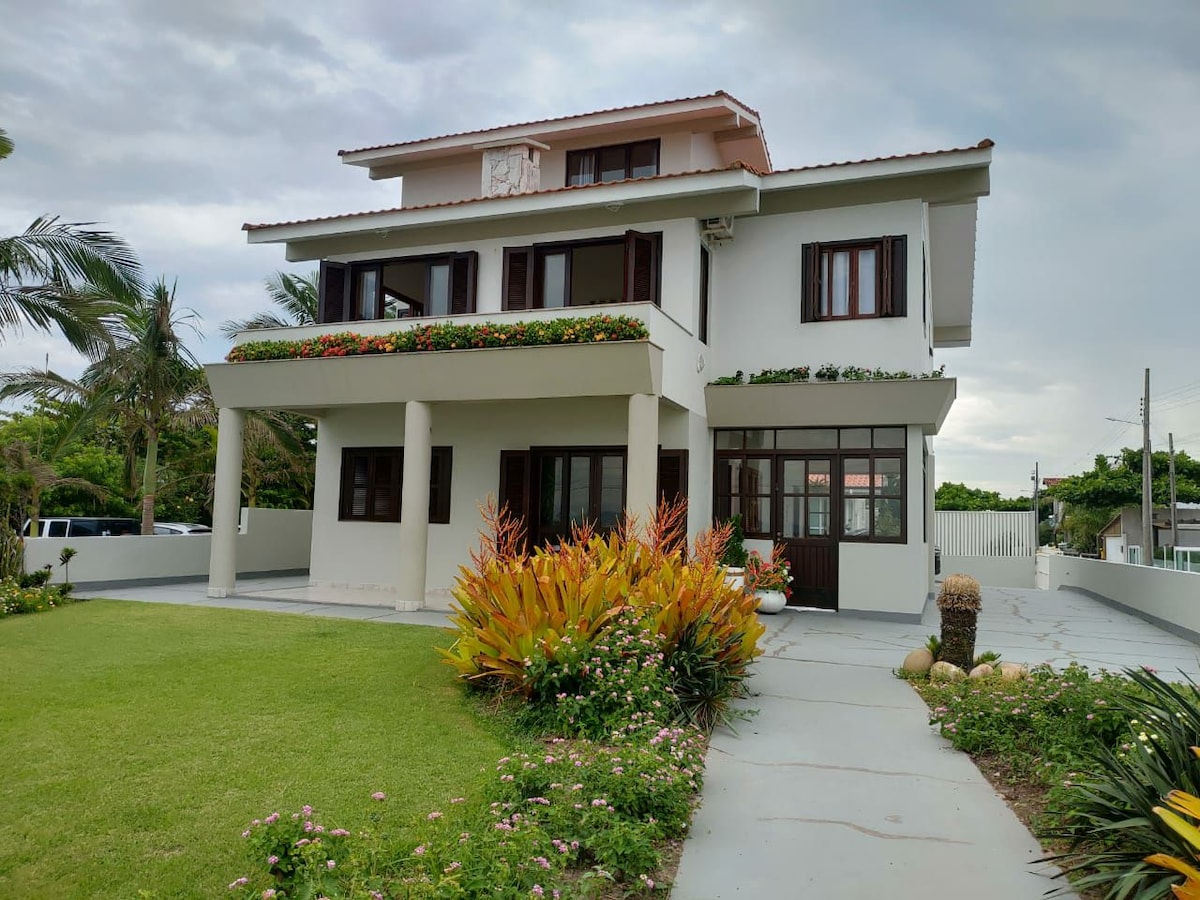 Hus foran Siriú-stranden, Garopaba... fantastisk sted, sov med lyden af havet! Huset kan rumme 8 gæster komfortabelt. Meget hyggeligt sted! Fra sommer til sommer... fra december til marts, højsæson. April til maj, med den berømte forårsvarme. Maj og juni, den traditionelle fiskeri af multer. Fra juli til november kommer hvalerne på besøg. "Hvor du kan se dem inde fra huset"!! Hus på anden sal, adgang via rampe! Overdækket garage til to biler.
