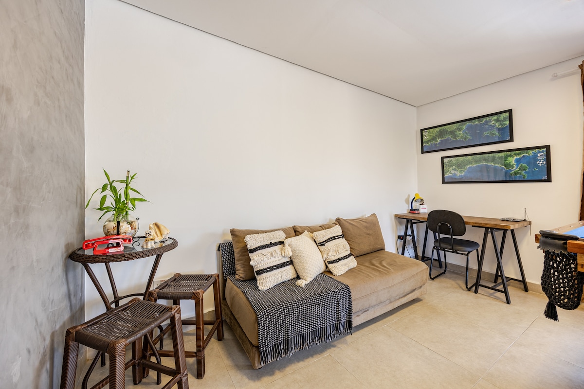 Relaxe em um espaço moderno e confortável conectado à natureza! Seja deitado curtindo a vista verde incrível das janelas do loft, no terraço com duchas e vista para o mar ou na Praia da Cigarras, que fica a apenas 500 metros de distância! Cada loft contém uma área de churrasqueira privativa. O terraço e a praça da área externa são compartilhados entre as 4 unidades. Venha sozinho, em casal ou entre amigos e aproveite cada canto pensado e criado com carinho para você!
