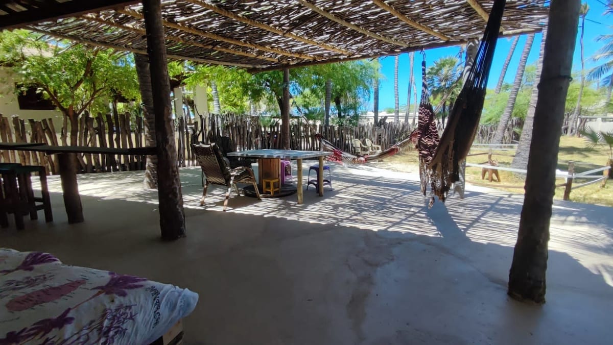 Beliggende i starten af fiskerlandsbyen på den paradisiske strand Alagamar i Grossos/RN. Et unikt sted at slappe af, mens du lytter til fuglesang og havets bølger. Gæsten har eksklusiv adgang til de interne og eksterne områder, med rigelig parkering + opholdsområde med bruser. Tag til Prainha for at se mangroverne og den hollandske mølle; Nyd strandteltene; Tag en færgetur eller kitesurfingundervisning; Besøg klitterne, saltfladerne og forelsk dig. Gå til havbadning