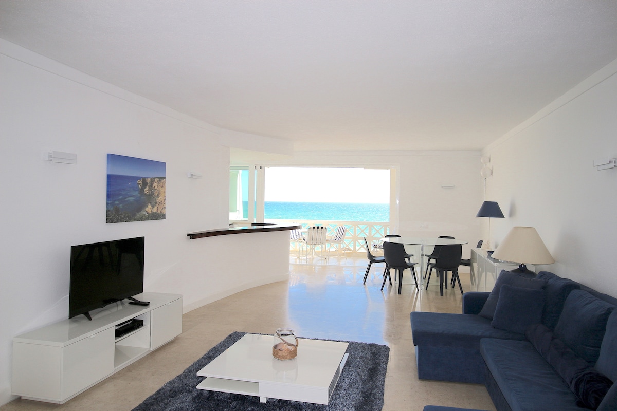 Lejlighed med stranddesign beliggende i et centralt, men roligt område. Gratis parkering foran lejligheden. 350 m fra stranden og 550 m fra byens centrum. 28 kvm terrasse med udsigt over havet med jacuzzi og total privatliv. 2 tematiske værelser: 1 suite med havudsigt og panorama-vindue til terrassen og jacuzzi, 1 ekstra værelse, 2 badeværelser, stue med havudsigt og panorama-vinduer og fuldt udstyret køkken. Aircond., wi-fi, kabel-tv med over 100 kanaler.