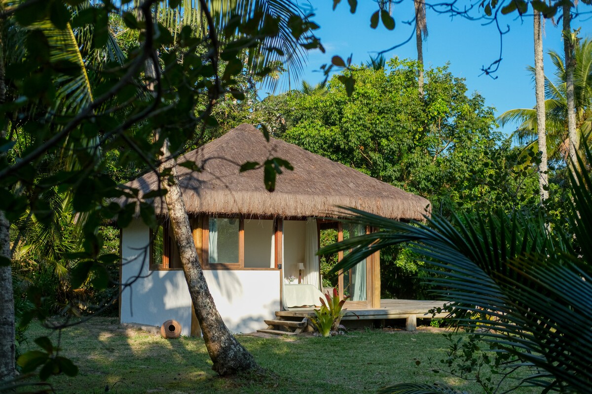 Kom og få kontakt med naturen og oplev utrolige øjeblikke på Maraú-halvøen. Vores hus er omgivet af lokale planter og et hyggeligt og specielt fristed. Der er to uafhængige atelierer i samme format, adskilt af en dobbeltvæg og med private balkoner på hver sin side, hvilket sikrer total privatliv. Studiet har aircondition, en dobbeltseng, et køkken udstyret med basale redskaber, et badeværelse og en hængekøje på balkonen. Vi er kun 1 km fra stranden og 5 km fra Barra Grande.