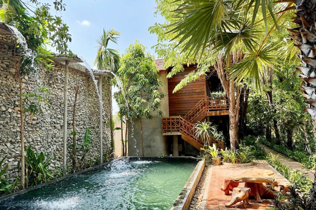 Slap helt af, og glem verden i denne fredfyldte, grønne bolig med udsigt over rismarkerne i udkanten af Siem Reap. Sov i et dejligt soveværelse med trægulv og aircondition, og vågn op til friskbrygget kaffe og morgenmad på din terrasse med udsigt over rismarkerne. Du har fuldstændig privatliv og hele boligen for dig selv, men dine værter er i nærheden, hvis du har brug for noget. Det perfekte sted at bo i Siem Reap!