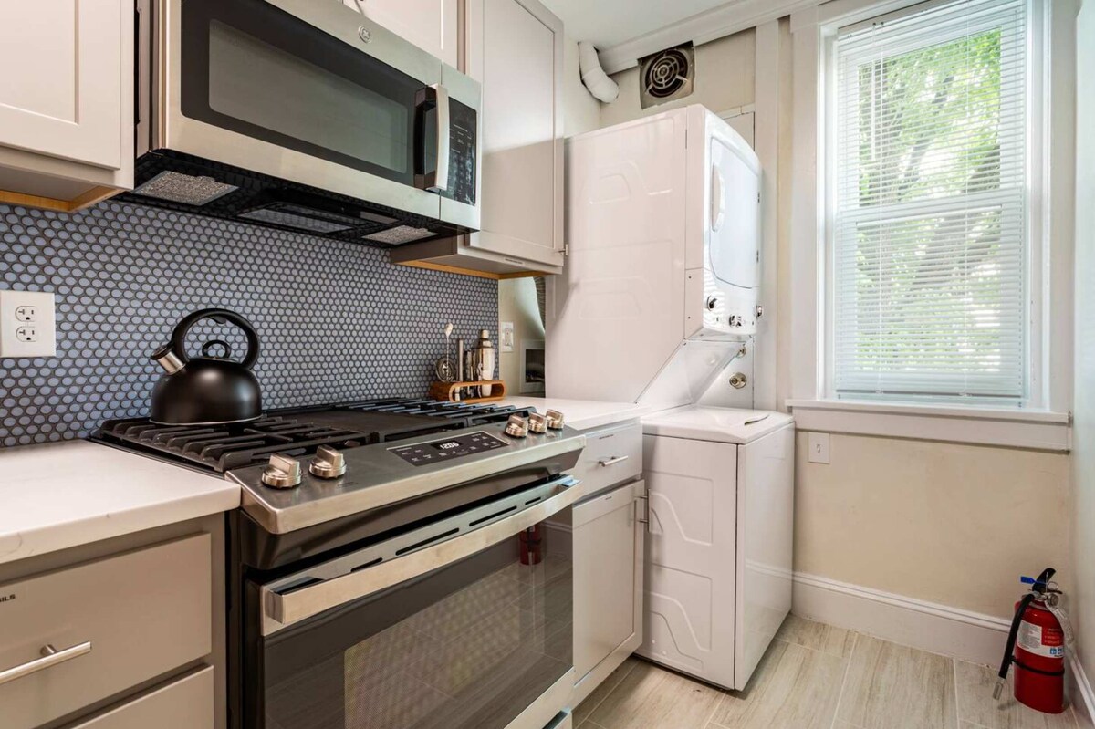 Stay in the heart of Princeton, just a short 10-minute walk from downtown and Princeton University! Perfect for traveling professionals, couples, families and friends. Sleeping up to four guests, the space features timeless architectural details paired with a fully equipped kitchen, ultra-fast 500MB WiFi, and plush memory foam beds for ultimate relaxation. Your stay includes one free onsite parking spot, conveniently located behind the building.
