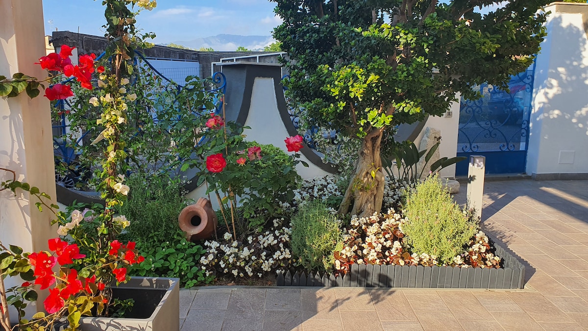 Min bolig er tæt på offentlig transport, byens centrum, familieaktiviteter. Du vil elske min bolig af disse grunde: beliggenhed, intimitet, ro. Skjult i en rolig have af oliven-, citron- og appelsintræer, er vores rene, komfortable og bekvemme lejlighed få skridt fra centrum, butikker, restauranter og offentlig transport til de legendariske skønhedssteder Capri, Ischia, Positano, Amalfi, Pompeji.. Der er en turistskat på 4 € pr. person pr. nat i maksimalt 7 nætter