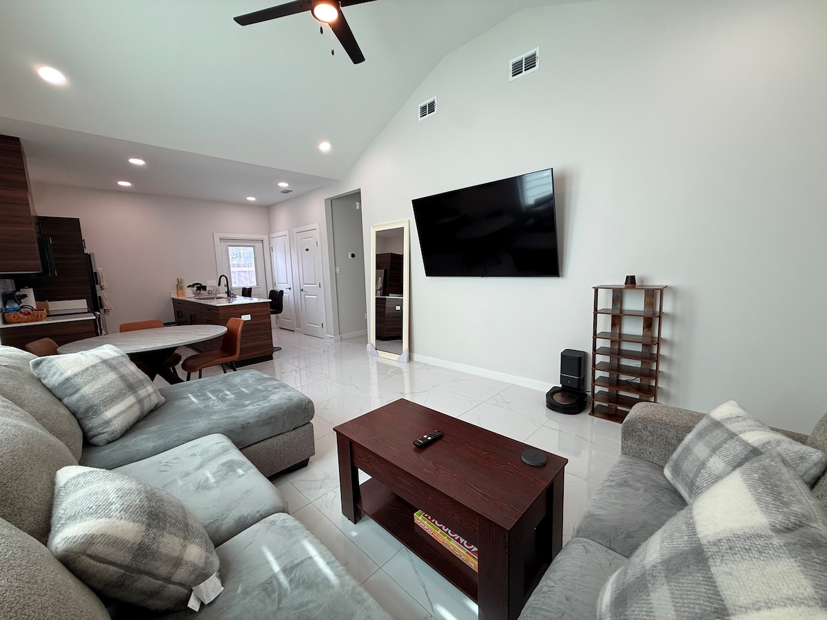 Nyd din private suite, der er designet til komfort og produktivitet. Nyd to komplette badeværelser, et privat kontor til fjernarbejde og en stilfuld åben stue, der er ideel til korte eller længere ophold. Perfekt til professionelle, der søger fred, privatliv og bekvemmelighed. Der er fire minutters kørsel til motorvejen.