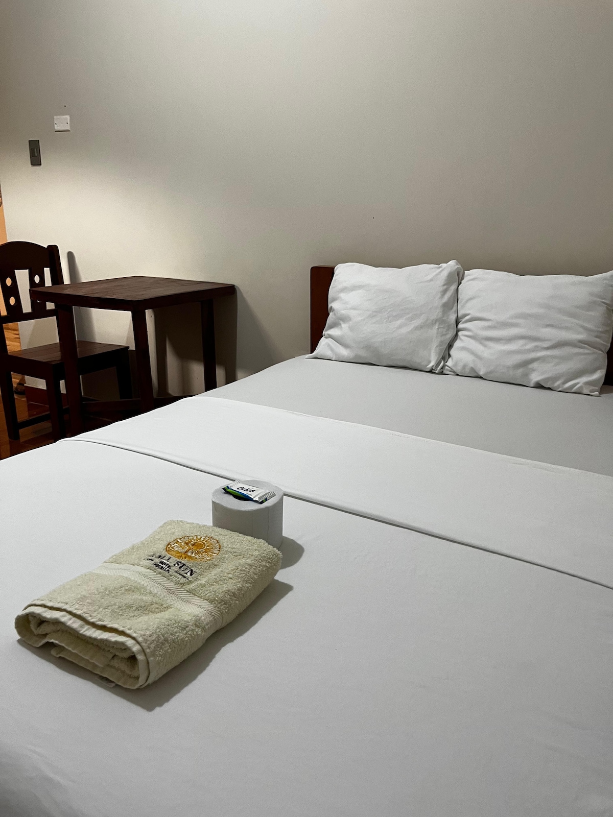 cuarto con cama doble,baño propio ,ventilador,tv smart 55 pulgadas,con ventanas bien ventiladas y vista hermosa a la ciudad,cuartos frescos y limpios