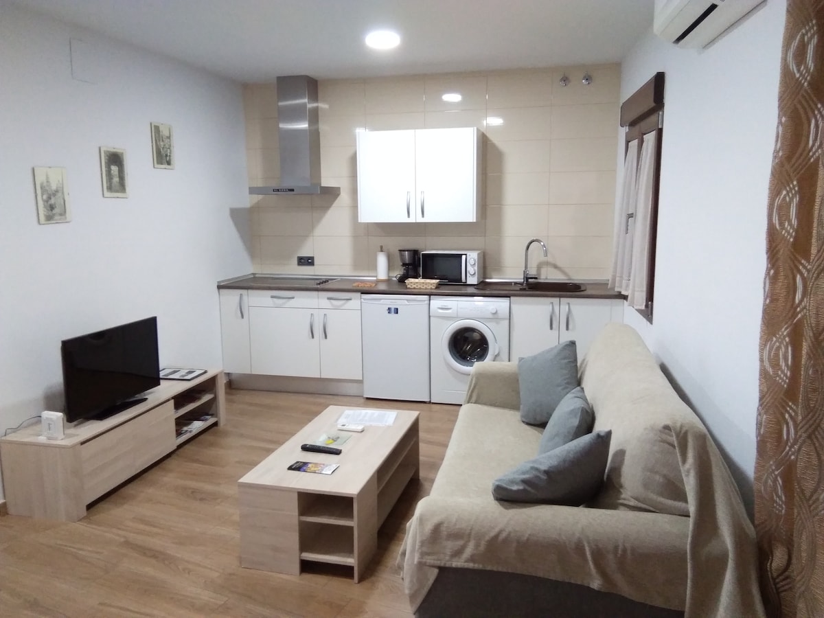 Hyggelig lejlighed beliggende i et repræsentativt område i den gamle bydel af Toledo. Bygningen fra det 16. århundrede er nyrenoveret med luksusmaterialer og et unikt design, helt nyt. Den har en dobbeltseng, opholdsstue og komplet køkken med et lille spisebord. Den har en balkon, der vender ud mod gaden. Beliggende få meter fra Puerta de Bisagra og i nærheden af flere parkeringspladser og adgang til offentlig transport.
