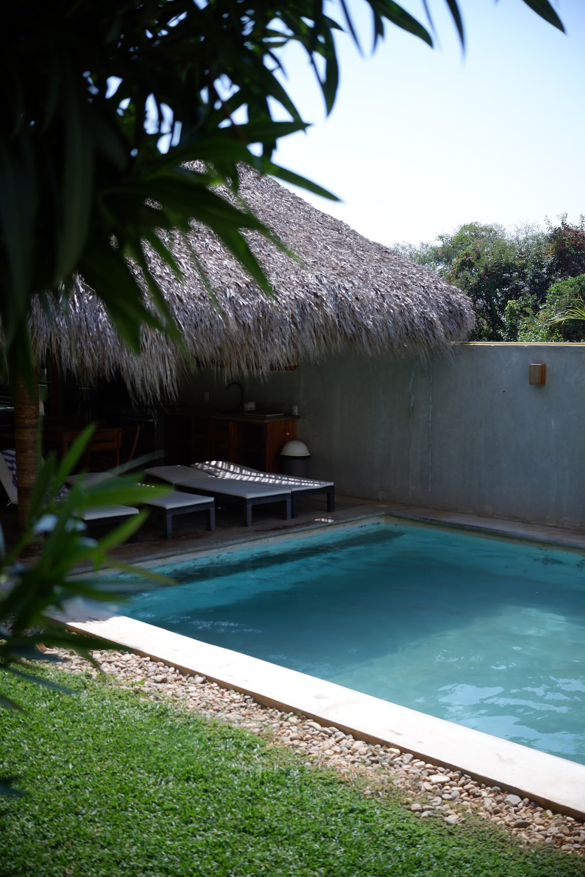 Casa Dos Palmas er et smukt specialbygget hjem med pool kun få minutter fra stranden, butikker og restauranter i Playa Zicatela. Vores 2-værelses havelejlighed er alt, hvad du har brug for til din næste Puerto-ferie. Tag en tidlig strandtur om morgenen, surf eller spis brunch på vores lokale yndlingscafé 'Cafe Dans'. Slap af og slap af på poolterrassen og nyd lyden af havet.