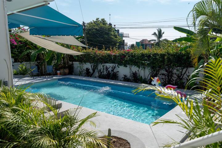 Casa Lily ligger i hjertet af Playa Zicatela og er en skjult perle. Med opmærksomhed på detaljer og dejligt personale til at hjælpe, vil du elske din tid her. Slap af i hængekøjen, eller læg dig ved poolen i den tropiske have. Vi er et par minutters gang til stranden, butikkerne og nattelivet i Playa Zicatela. Perfekt beliggenhed til tidlig morgensurfing eller strandtur og lige ved siden af vores lokale yndlingscafé, 'Cafe Dans'.