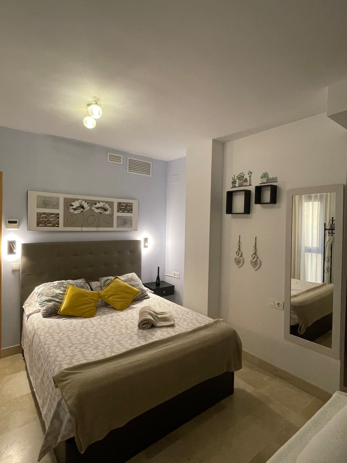 The interior of the apartment is modern and light in colour. The bedroom is furnished with a double bed (1.50 m x 1.90m) and a built in closet and the adjacent bathroom has a shower tub, a sink, a toilet and a hair dryer. NEW 2025! New Mattress It is registered in the Registry of Tourism of Andalusia with No. VUT / MA / 00382, and General Register No. ESFCTU0000290200007471060000000000000000VUT/MA/003826