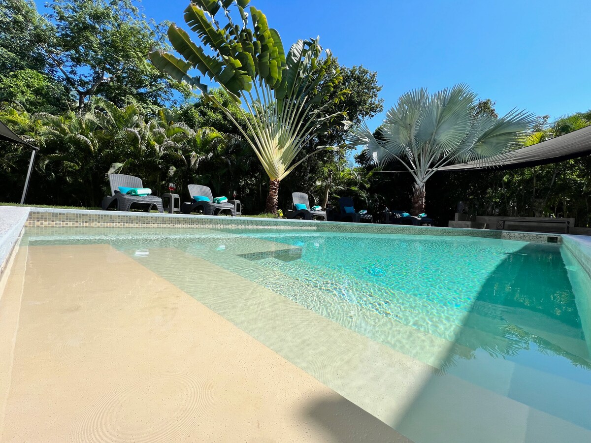 Nyd solen i luksus, og vågn op ved siden af stranden. Tilbring tid i poolen med din familie, eller slap af i den dovne flod. Tag hele din familie med. De to udtrækssofaer har plads til fire gæster. Ud over den komfortable kingsize-dobbeltseng i soveværelset. Alt er tæt på. Der er fantastiske restauranter fem minutter væk. Du kan gå på junglestierne