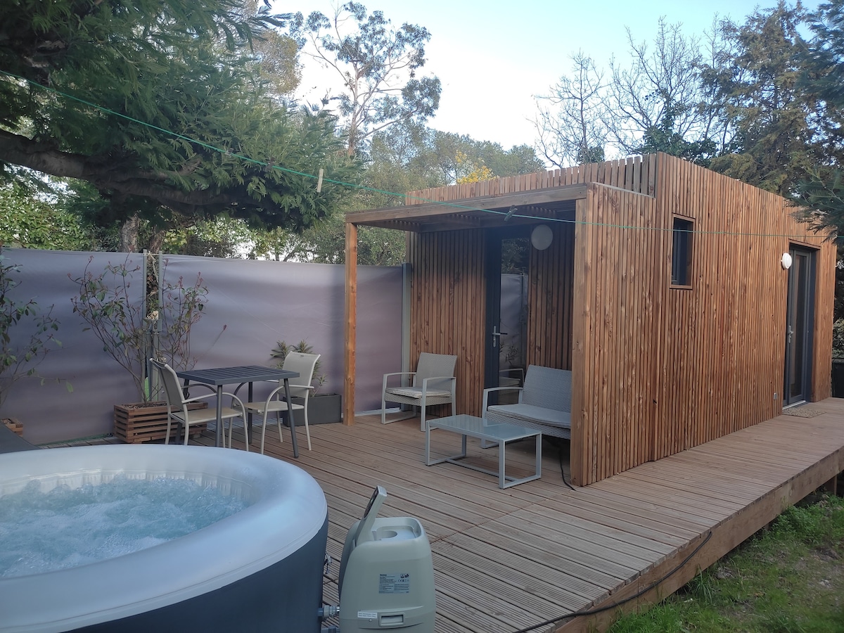 I DEN PRIVATE EJENDOM "LE MAS DE LA GLUE" MÉSONETTE TIL 2 PERSONER UDSTYRET MED EN JACUZZI (I DRIFT FRA MAJ TIL SEPTEMBER), BELIGGENDE I HJERTET AF ESTEREL, IKKE OVERSKUET OG I ABSOLUT RO. ________________ щ Wi-Fi щ Privat parkeringsplads щ Aircondition for din komfort щ 1 queensize-seng (160/200) щ - Møbleret køkken щ Vaskemaskine щ Nespresso-maskine til kaffeelskere. → Elektrisk grill щ Beaches and Golfs 10 minutters kørsel щ Tæt på faciliteter 5 min. kørsel