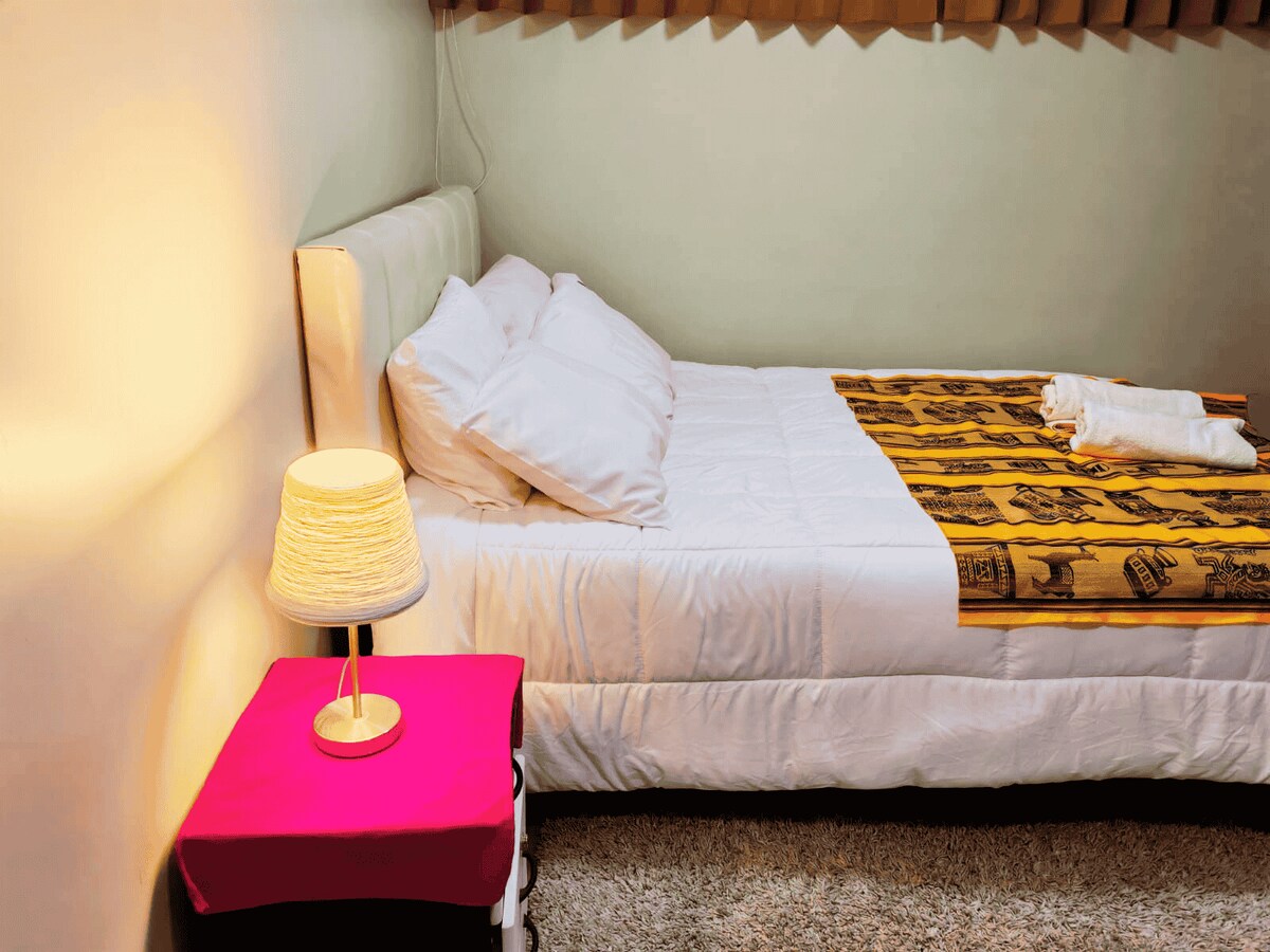 Oplev magien ved Virgen de la Candelarias fest fra en central lejlighed, kun tre blokke fra Plaza Mayor. Nyd optog, danse og kulturelle begivenheder til fods uden at bekymre dig om trafikken. Lejligheden er komplet og komfortabel: 2 soveværelser, spisestue, køkken, badeværelse med varmt vand, stabil wi-fi og smart-tv. Kapacitet op til 5 gæster. Perfekt til at slappe af og opleve Candelaria uden stress i Puno.