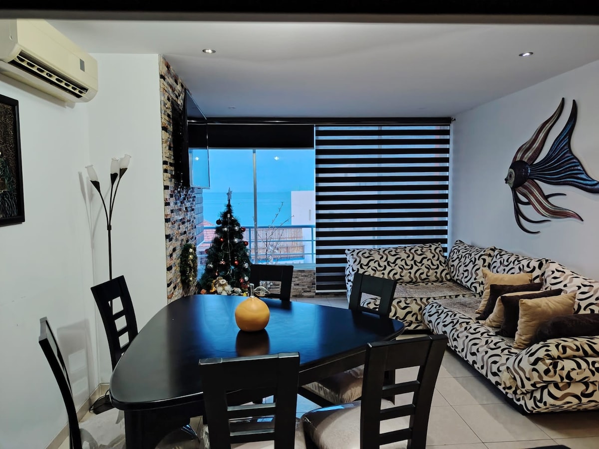 Familielejlighed, hvor kæledyr er velkomne, fuldt møbleret, døgnvagt, smuk havudsigt, socialt område med børnepool, pool for voksne, spabad, direkte adgang til privat strand, grillplads, spillerum, fitnesscenter, lobbyer, coworking-område med wi-fi, tennisbane, handicapvenlig, parkeringsplads. 5 minutter fra San Pablo 10 minutter til Ballenita busstation 20 minutter til Salinas, 45 minutter til Montañita Ideel til en ferie med hele din familie.