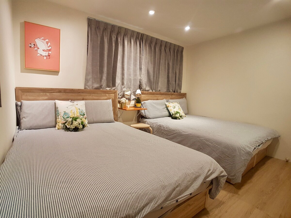 Spørg venligst om ledigheden, inden du booker.Anmod ikke om en reservation direkte. 8~18 personer, 7 dobbeltsuiter med forskellige designstil har private badeværelser, nogle værelser tilbyder ekstra senge, gratis wi-fi, tv, aircondition. Der er offentlig transport (stue), vanddispenser, gratis kaffe- og teposer, møntbetjent vaskemaskine, tørretumbler ★i nærheden af Exit 2 fra Kaohsiung Metro Red Line Central Park Station (R9), kun 3 minutter til fods. Afhængigt af antallet af bookede gæster er der fire dobbeltsuiter til rådighed for op til otte gæster. 10 for 5 dobbeltsuiter. 12 til 6 dobbeltsuiter. 14 for 7 dobbeltsuiter.Der er et lille antal personer, hvis du har brug for at øge rummet, vil der være et ekstra værelsesgebyr, og nogle værelsestyper giver ekstra sengetjeneste. Spørg, inden du booker.