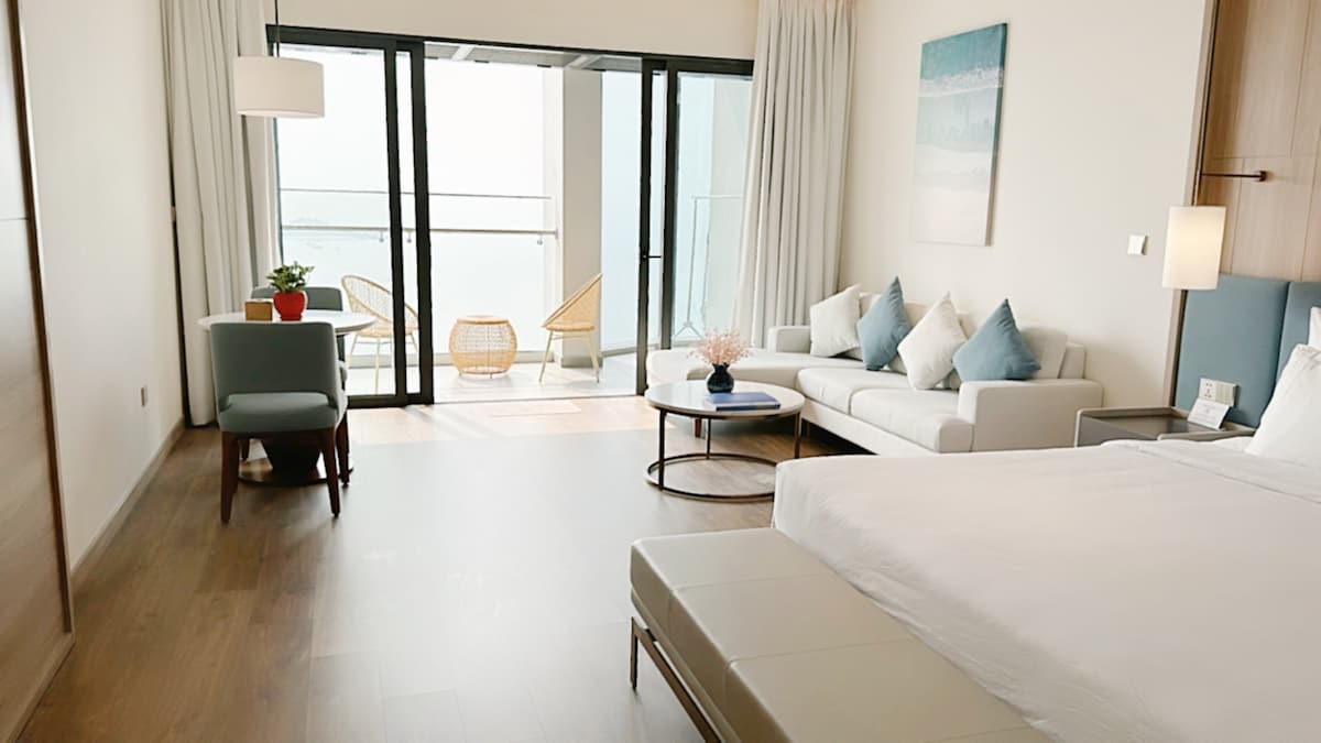 - Det vigtigste højdepunkt er rummet med havudsigt, hvor du kan drikke din morgenkaffe, se den lyse solopgang eller slappe af med den romantiske solnedgang over havet. - Lejligheden består af 1 soveværelse, stue, der forbinder køkkenet og er velegnet til par eller lille familie. Komfortable møbler: aircondition, højhastigheds-wifi, smart-tv, komfur... giver følelsen af komfort som hjemme, men stadig fuldender resortoplevelsen. - Beliggenheden er lige ved stranden – kun et par minutters gang, og du kan allerede nyde det klare blå vand.