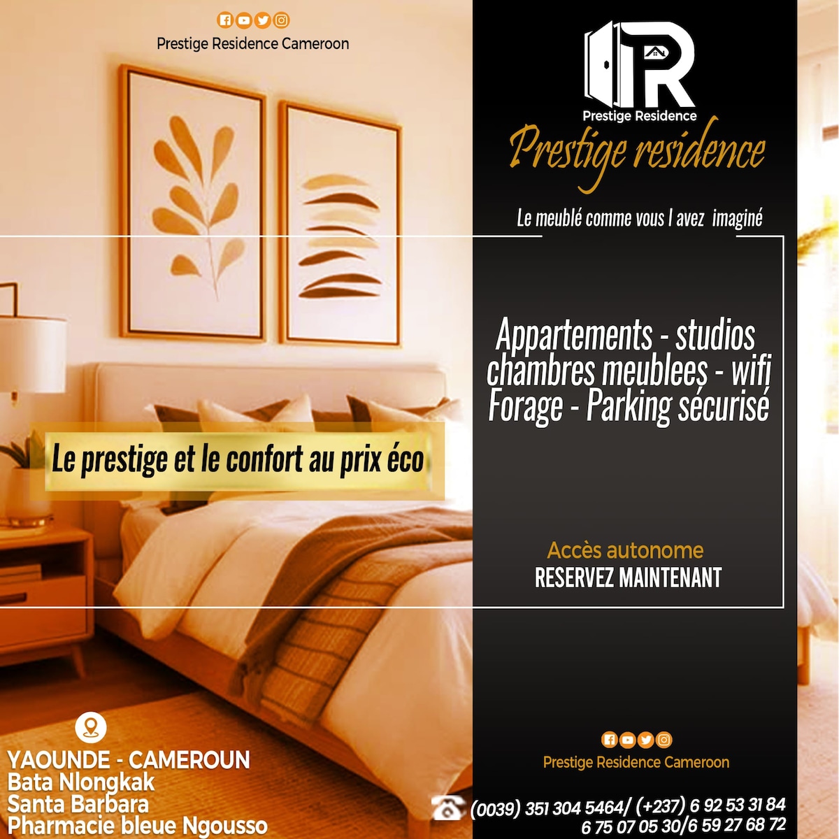 Denne fredelige indkvartering i "Emana-Pont" tilbyder et fredeligt ophold for hele familien. En storslået udsigt over poolen, bjergene og stadionet Olembe. Ideel til korte og lange ophold med husmødre, restaurant og massagerum. En gratis bil med chauffør inkluderet (10 euro mere). Mulighed for rabat uden for køretøjet. NB: ALLE KUNDER OPKRÆVES GRATIS I LUFTHAVNEN ELLER PÅ LANDINGSREJSEBUREAUET PÅ YAOUNDÉ EFTER ANMODNING.