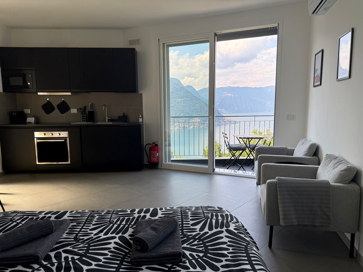 I created this studio for couples dreaming of a romantic weekend by the lake. The highlight is the private balcony, furnished for relaxing moments overlooking Lake Como. Inside, the space is bright and well organized, with a comfortable living and sleeping area, a functional kitchen and a modern bathroom. The sofa bed is comfortable for two adults, with fresh linens and extra pillows. Quiet and intimate, it’s perfect for slowing down and enjoying unforgettable views together.