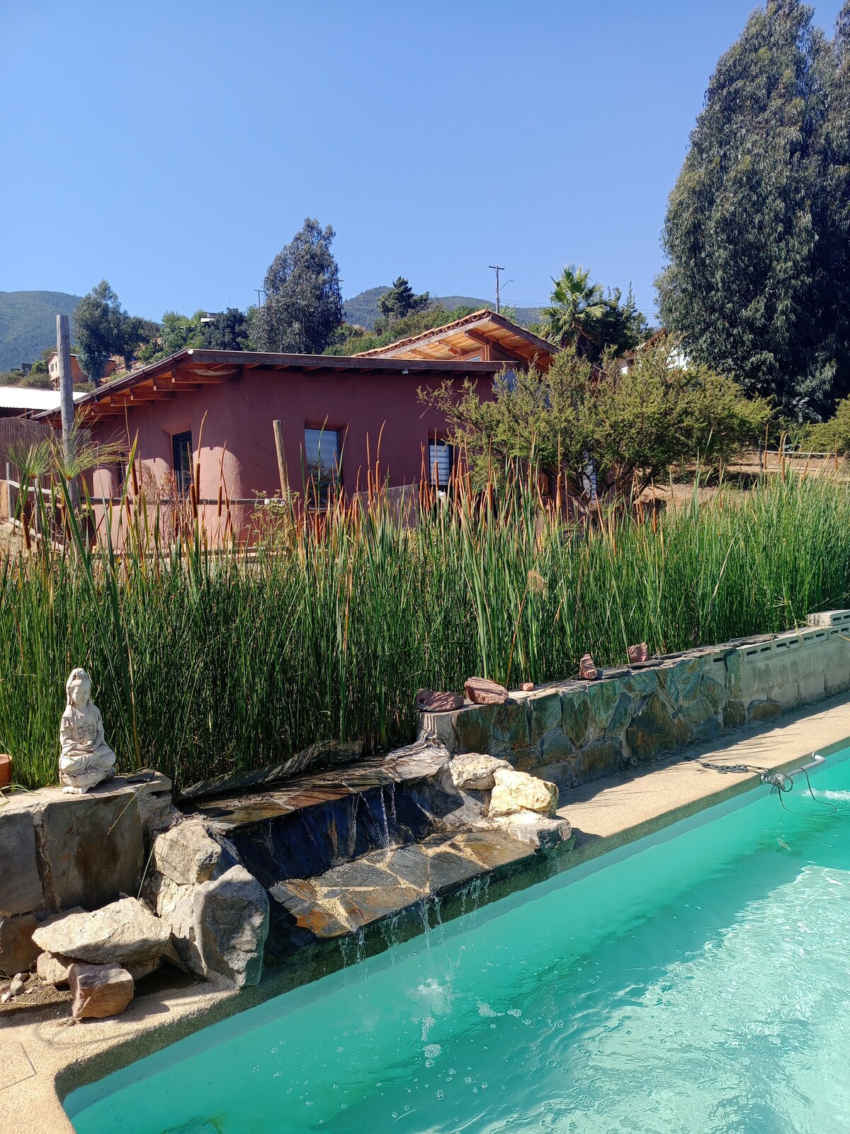 Fremragende og rolig privat hus fuldt udstyret med swimmingpool og privat terrasse i Olmué, på en grund på 2.000 m². Vi ligger mellem paradero 33 og 34 i Granizo-sektoren, få blokke fra hovedgaden i et familieområde. 2 km fra centrum. Huset har 3 soveværelser, 1 dobbeltværelse, 2 værelser med 2 senge, 1 badeværelse og et fuldt udstyret køkken. Vi har en pejs i stuen og en overdækket terrasse foran poolen. Vi er kæledyrsvenlige!!