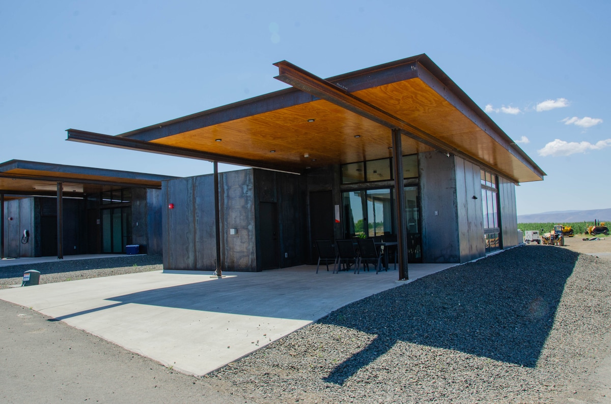 The VIP Lounge is a Olson Kundig-designed home. Steps from the Gorge Amphitheatre, it overlooks the Cave B Estate Winery vineyards & Columbia River. Our 1 bedroom, 1 bathroom home features a private patio and upgraded kitchen. It's a comfortable, modern-industrial feel that fits the landscape. Walk to concerts, wine tasting, dinner, or spa reservations. Hike Frenchman Coulee, bike Ancient Lakes, enjoy yoga on the patio, or just relax and take in the view
