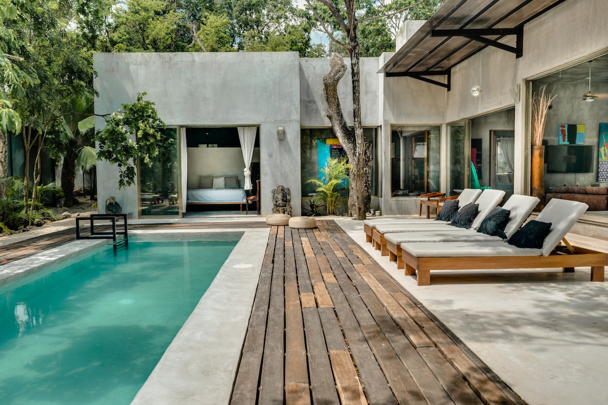 Jungleloft med pool nær stranden, centrum og cenoter.